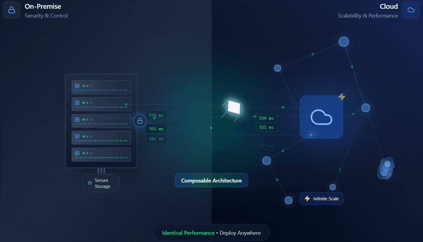 A cloud-agnostic, composable architecture that scales effortlessly while meeting security, performance and regulatory requirements.