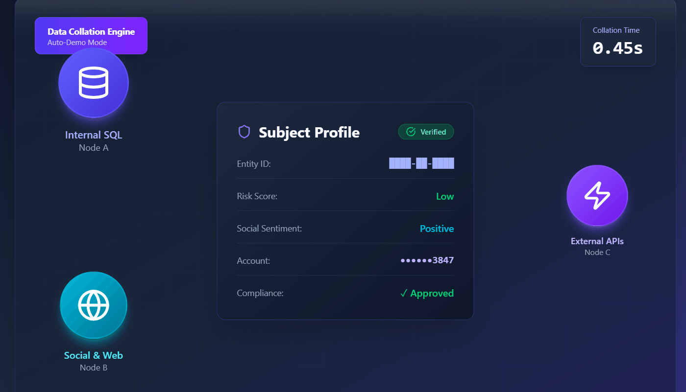 Drona’s Agentic Decisioning Platform enables case specific data collation using SQL, Web & Social Media scraping and External APIs.