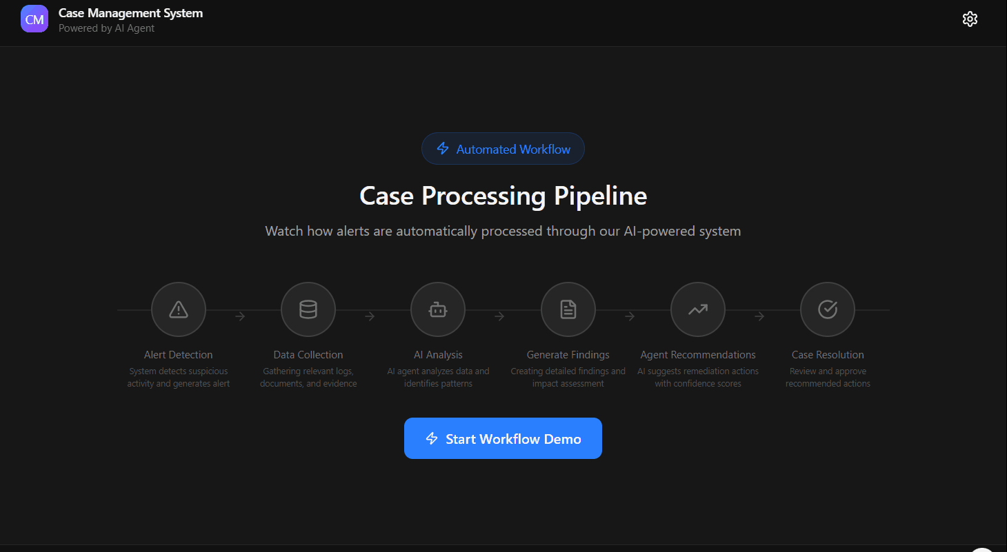 Configure workflows where AI agents can collate , process, investigate, analyze, and resolve cases while working with teams in a interactive manner.
